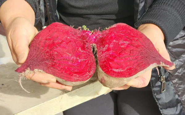 红甜菜的价值链条正在不断延伸,所富含的天然红色素是食品工业的优质原料;清甜的口感适合搭配果汁、凉拌菜及奶昔;富含的维生素C与矿物质,契合现代健康消费趋势。这片“红色田园”变身农耕文化实践课堂,学生群体通过研学活动参与采收,学习农业知识。