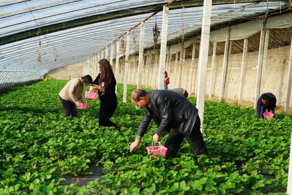 在英下乡,像阿克东村草莓采摘园这样的休闲采摘基地还有许多。近年来,英下乡立足资源优势,加强农业技术投入,持续深耕特色农业,打造集休闲、娱乐、采摘、体验于一体的果蔬采摘产业模式。目前,全乡已改造提升蔬菜温室大棚1600余座,实现增产30%左右,每户增收1万余元,带动周边1000余名村民实现就近就业,让特色种植成为群众增收致富的坚实路径。