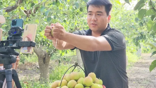 “好梨不愁产,就怕人不知。”乘着电商发展的东风,地力木拉提敏锐捕捉商机,2021年他开始尝试直播带货。还是直播“小白”的他便从零学起,把直播间搬到田间地头和冷库,用镜头全景展现库尔勒香梨种植、分拣、保鲜的全过程,凭借真诚的讲解赢得广大网友的信任。短短两个月,他通过直播卖出600余吨香梨,订单源源不断。如今,他已入驻8个电商平台,让库尔勒香梨不仅销往全国各地,更走出国门、远销中亚市场。