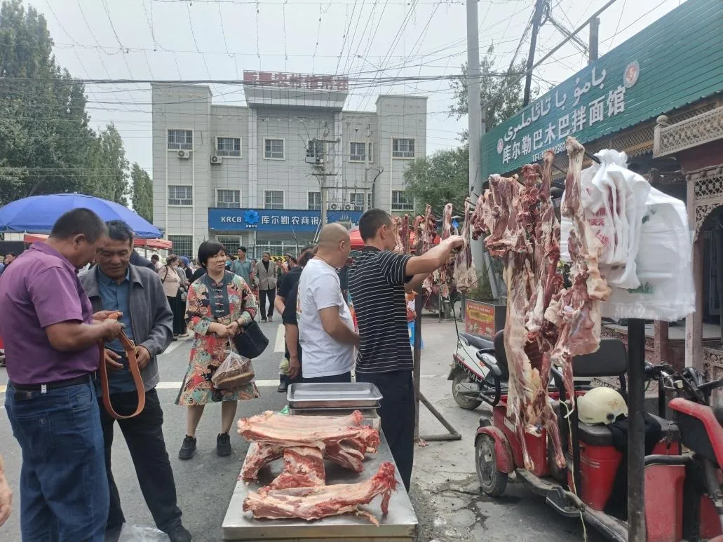 位于阿瓦提乡小兰干村的库尔勒市活禽活畜交易市场,每周四和周日开集,在活羊售卖区和家禽交易区,可以购买到村民自家养的羊、鸡、鸭、鸽子等活禽活畜,种类繁多。市场占地180亩,设置牛羊、生活用品、服装、蔬菜、干果、肉食、家禽、五金、农机用品共9个交易区域。市场安排专业检疫人员,严格按照检疫流程,为市场商户提供检疫服务。