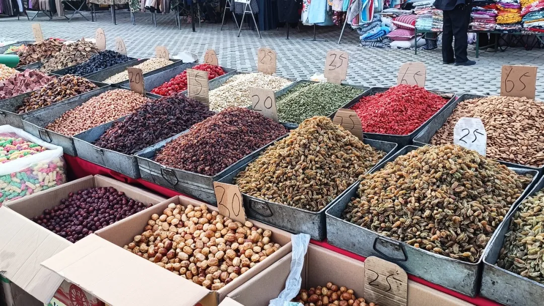 兰干乡欢乐大巴扎特色干果售卖摊位。