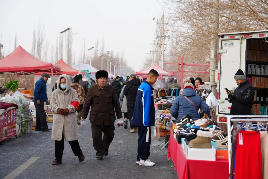 与此同时,吉格代巴扎里热气腾腾、香气四溢,各色传统美食、特色小吃引得人们驻足品尝。一旁的农村土特产销售区,本地优质干果、手工制品、家禽、特色农产品等琳琅满目,既满足群众味蕾与购物需求,又为本地农户和手工艺人提供了展示和销售的平台,有效促进产销对接,助力农民增收。