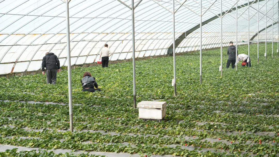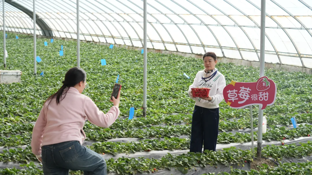 3月21日,在英下乡英冠田园小镇,一排排整齐的温室大棚内生机盎然。红彤彤的草莓点缀在翠绿枝叶间,清甜果香扑面而来,吸引不少市民游客前来采摘。“我们共有8个草莓种植大棚,主要种植巧克力草莓、白草莓、奶油草莓三个品种。”种植户吴军说。