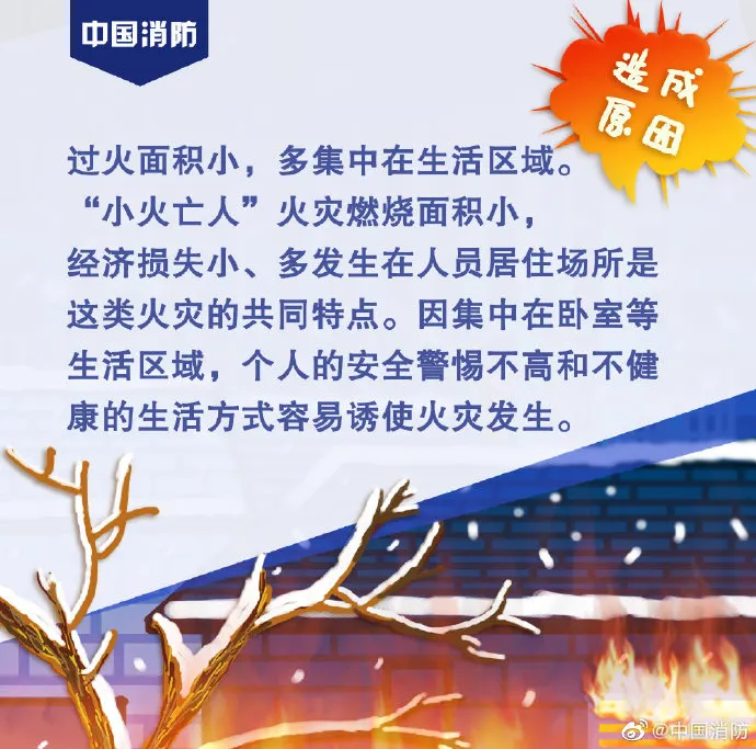 “小火亡人”是指火灾中经济损失小、过火面积小、受灾户数和人数相对少,但又造成人员死亡的火灾事故。