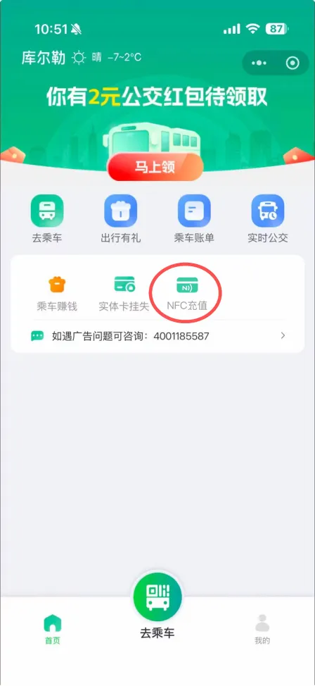 温馨提示:充值过程中,请保持公交卡与手机感应区域稳定贴合,避免移动卡片导致充值失败或数据异常;若您的公交卡不支持NFC功能,可前往库尔勒市公交线下服务网点咨询升级事宜。如在使用NFC充值公交卡业务过程中遇到问题,可拨打库尔勒市公交服务热线:0996-2116062,我们将为您提供专业的咨询与协助,感谢您对库尔勒市公交的支持与信任,让我们共同迈向更智慧、更便捷的出行新时代!