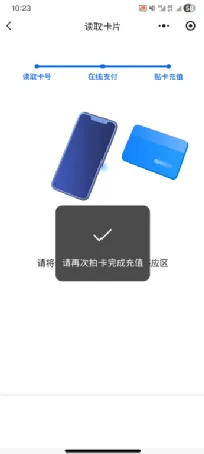 5、支付成功后,将卡片继续贴紧手机背部,待手机跳出充值成功界面时,即完成了卡片充值