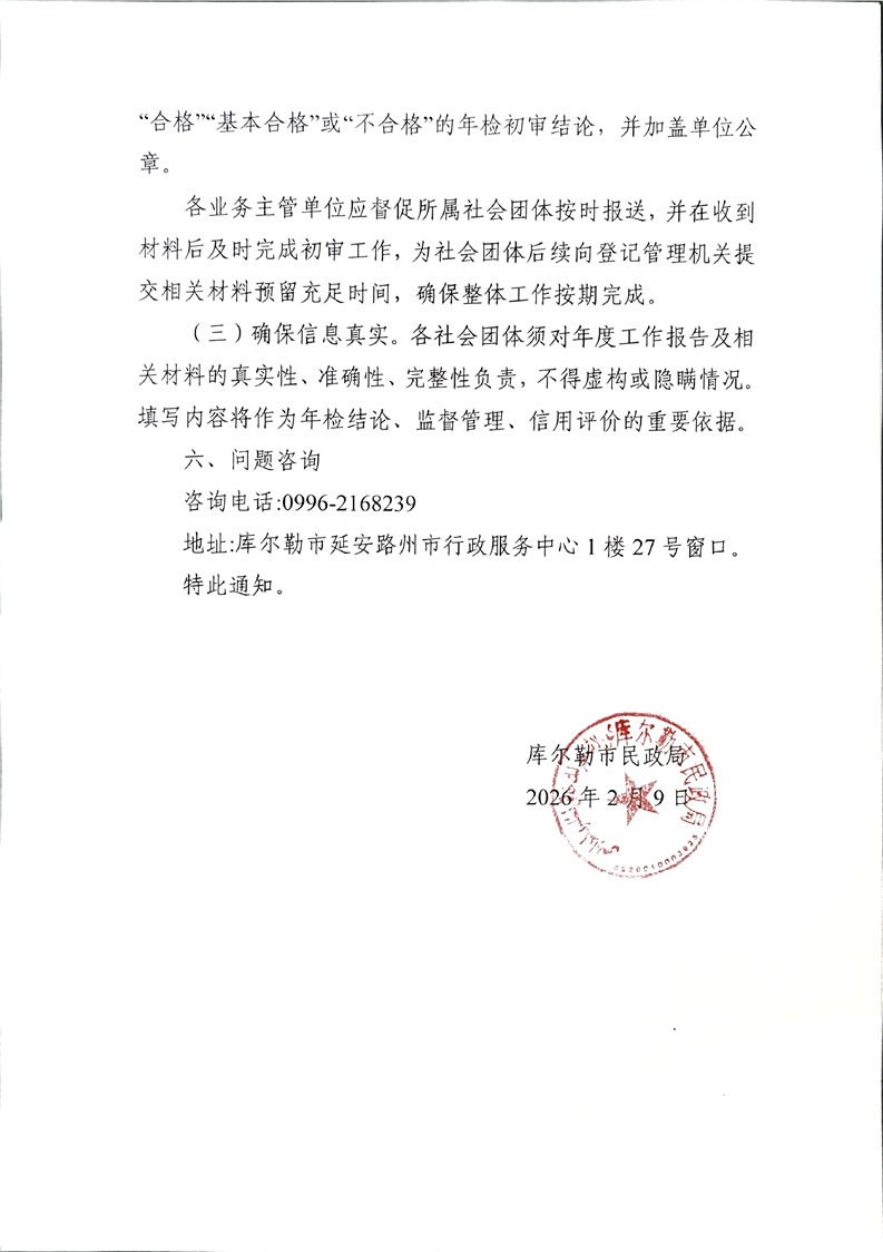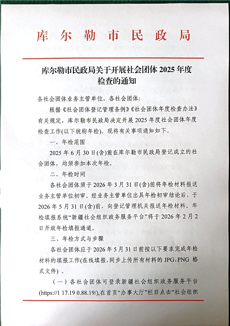 库尔勒市民政局关于开展社会团体2025年度检查的通知