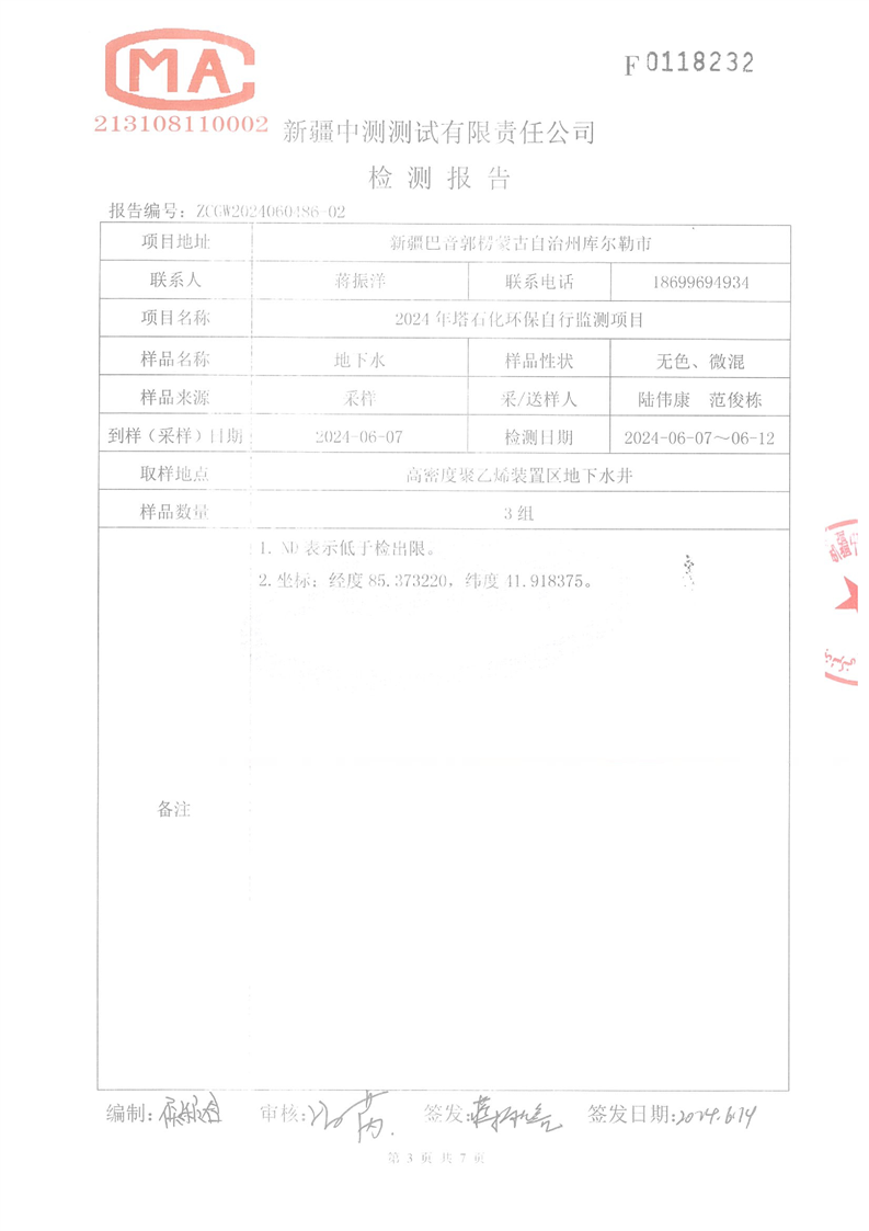 中国石油天然气股份有限公司塔里木石化分公司2024年土壤和地下水监测报告