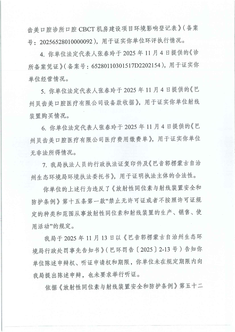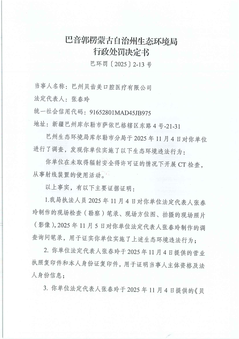 对巴州贝齿美口腔医疗有限公司行政处罚决定书进行公示