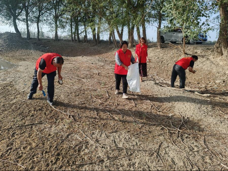 库尔勒市托布力其乡湖滨社区为做好辖区内孔雀河末端河水生态安全、行洪安全,努力营造全民参与、共爱河湖的良好氛围,在湖滨社区孔雀河段,托布力其乡全体党员干部志愿者联合开展以“关爱河道清捡垃圾用心守护碧水蓝天”为主题的环境清理志愿服务活动。