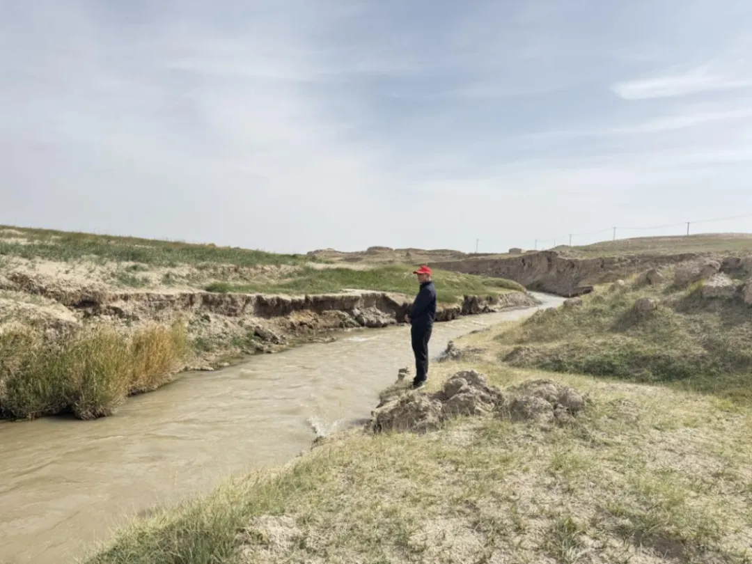 和硕县新塔热乡乡级副河长开展巡河工作。