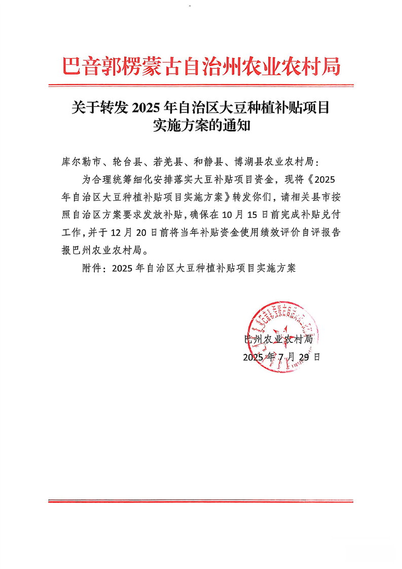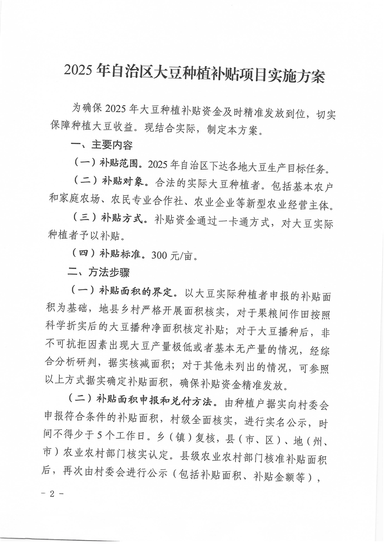 关于转发自治区2025年大豆种植补贴项目实施方案的通知