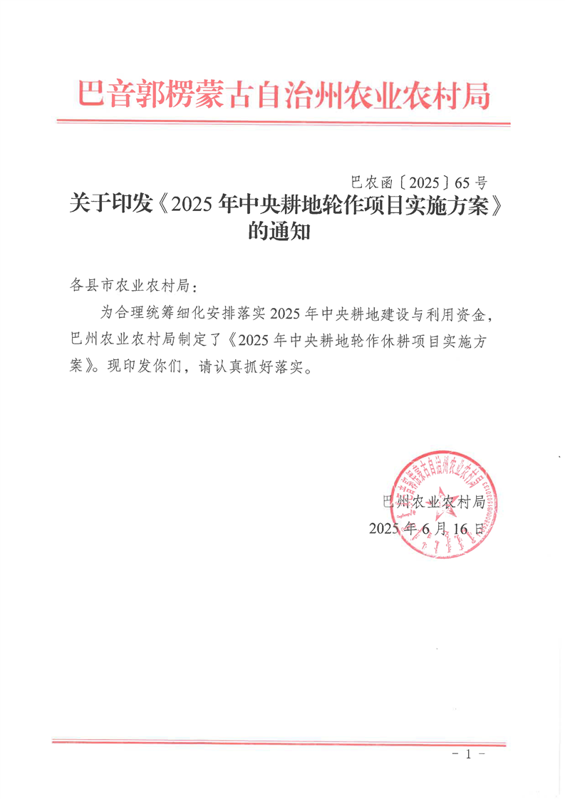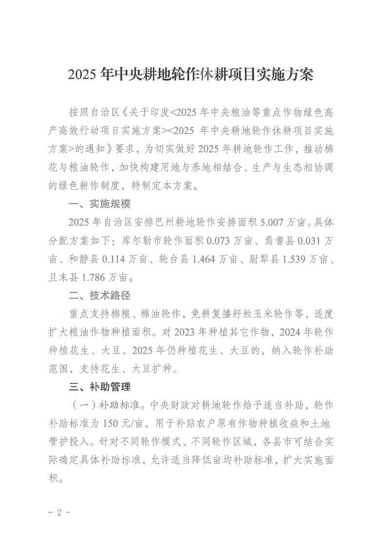 关于印发2025年中央耕地轮作休耕项目实施方案的通知