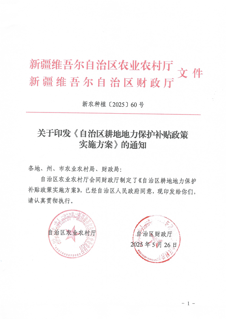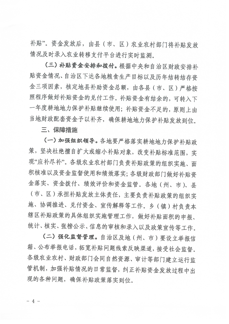 关于印发自治区耕地地力保护补贴实施方案的通知