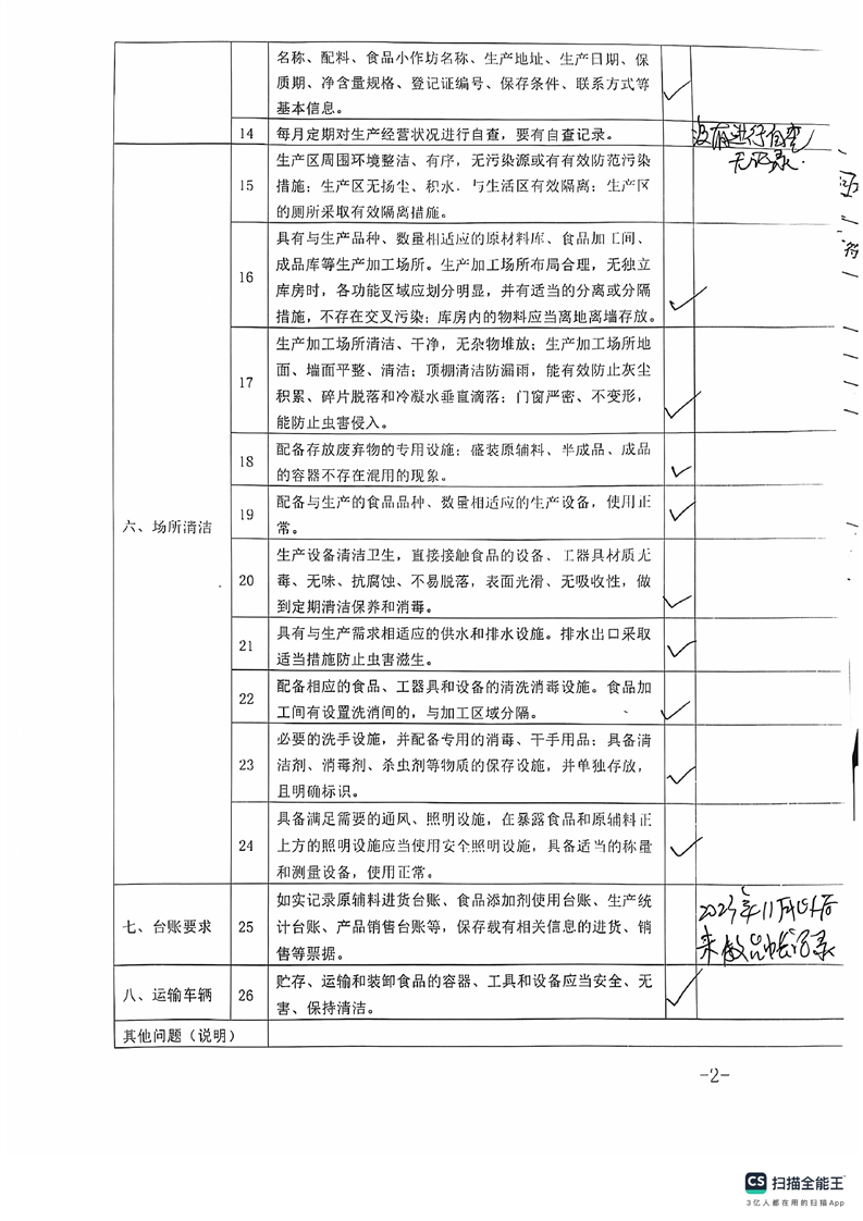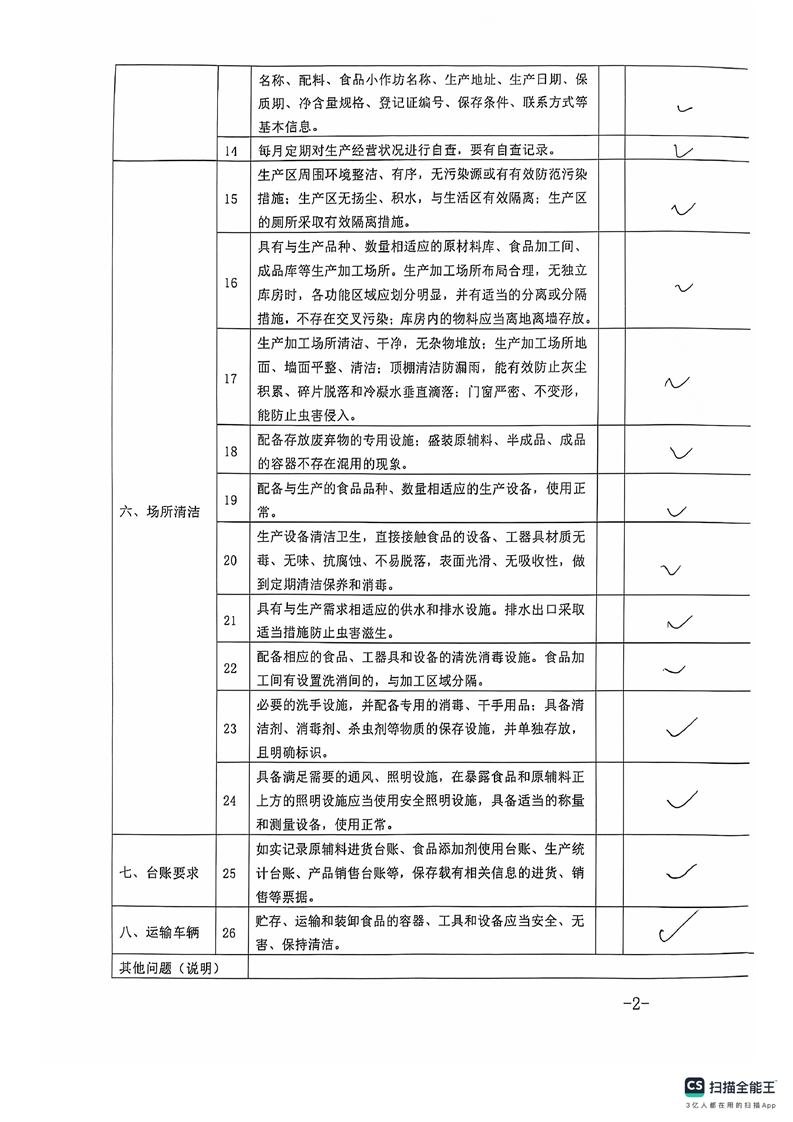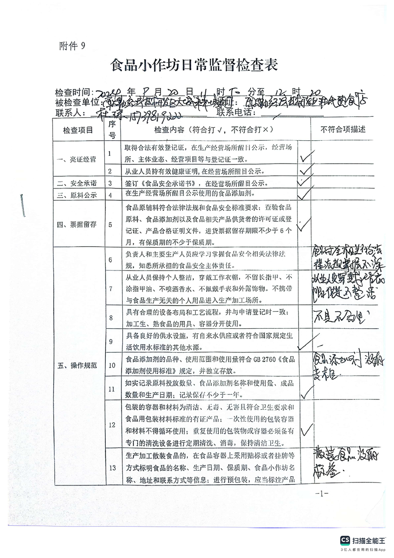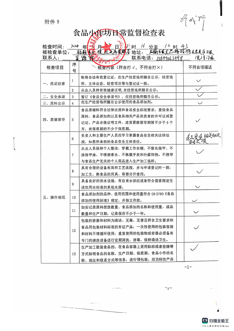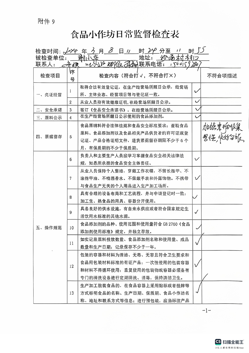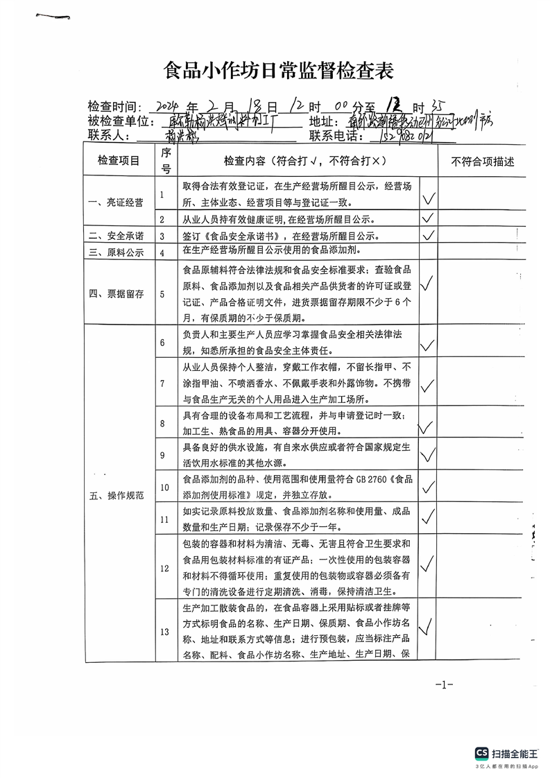 2024年库尔勒市食品小作坊日常监督检查表