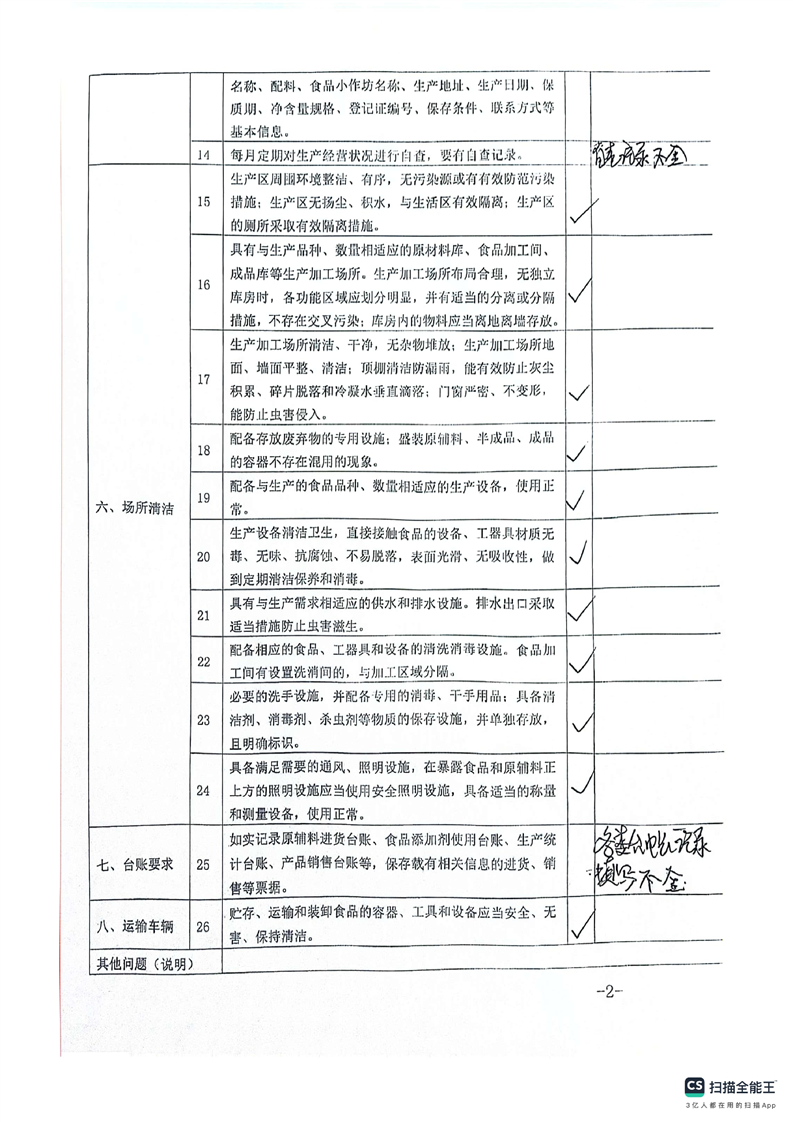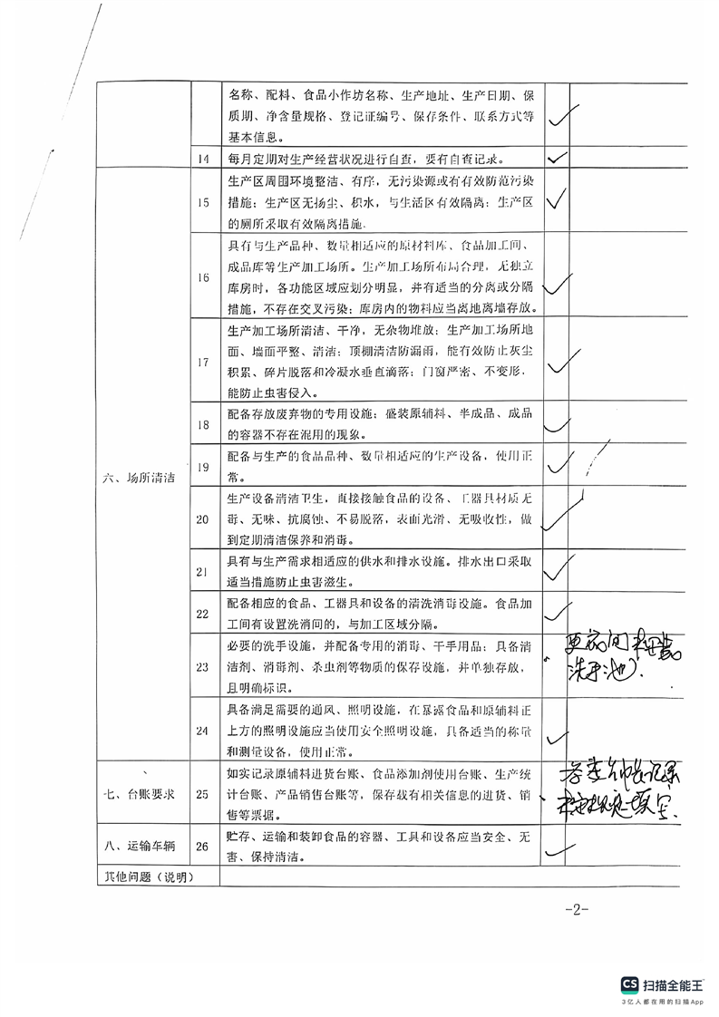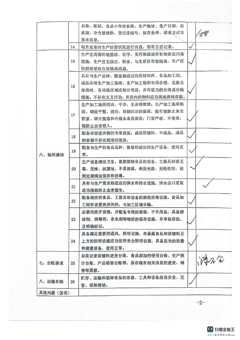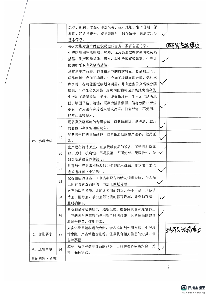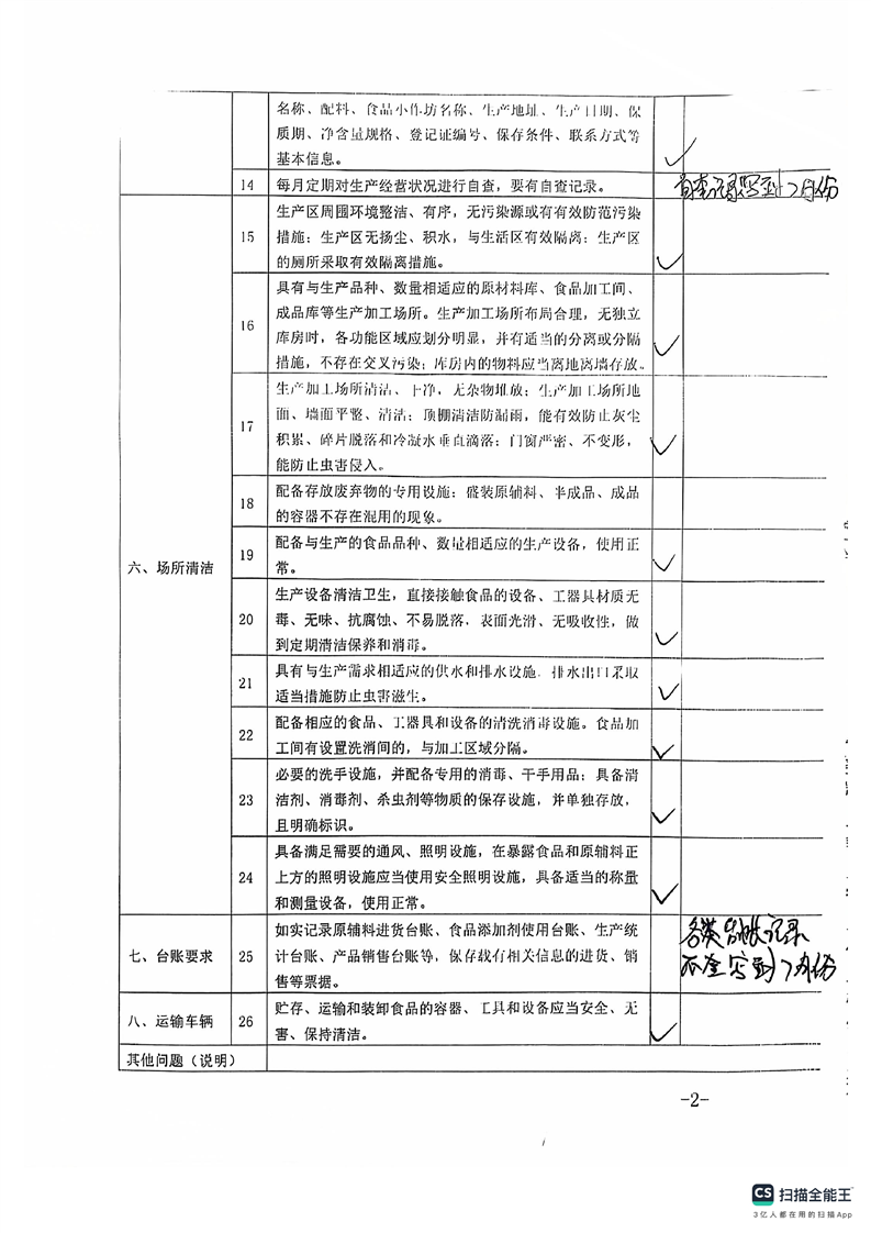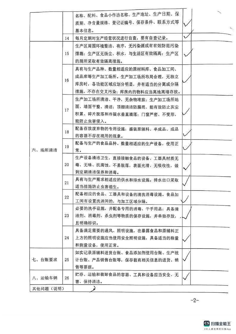 2024年库尔勒市食品小作坊日常监督检查表