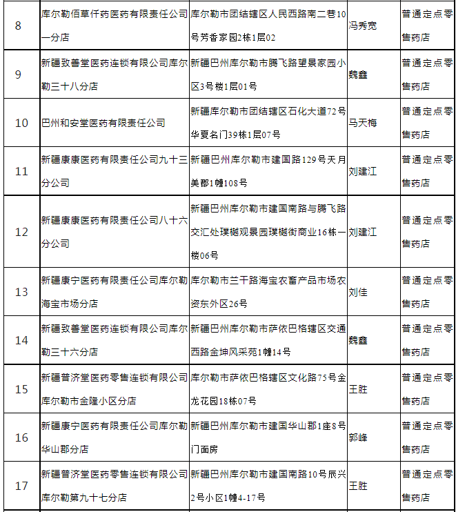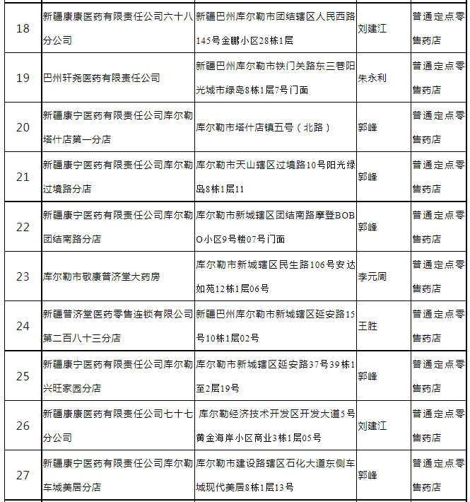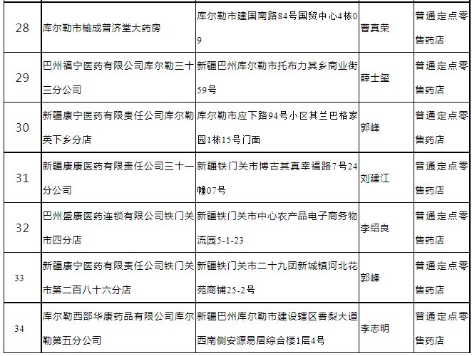 2、新疆康宁医药有限责任公司库尔勒凯旋公馆分店等30家药店(见附件1)经现场评估,考核分数达到80分以上,根据《巴州医疗保障定点医药机构管理经办规程》和《关于进一步明确巴州医疗保障定点医药机构准入评估工作有关事项的通知》相关规定予以准入定点零售药店服务协议管理(见附件1)。