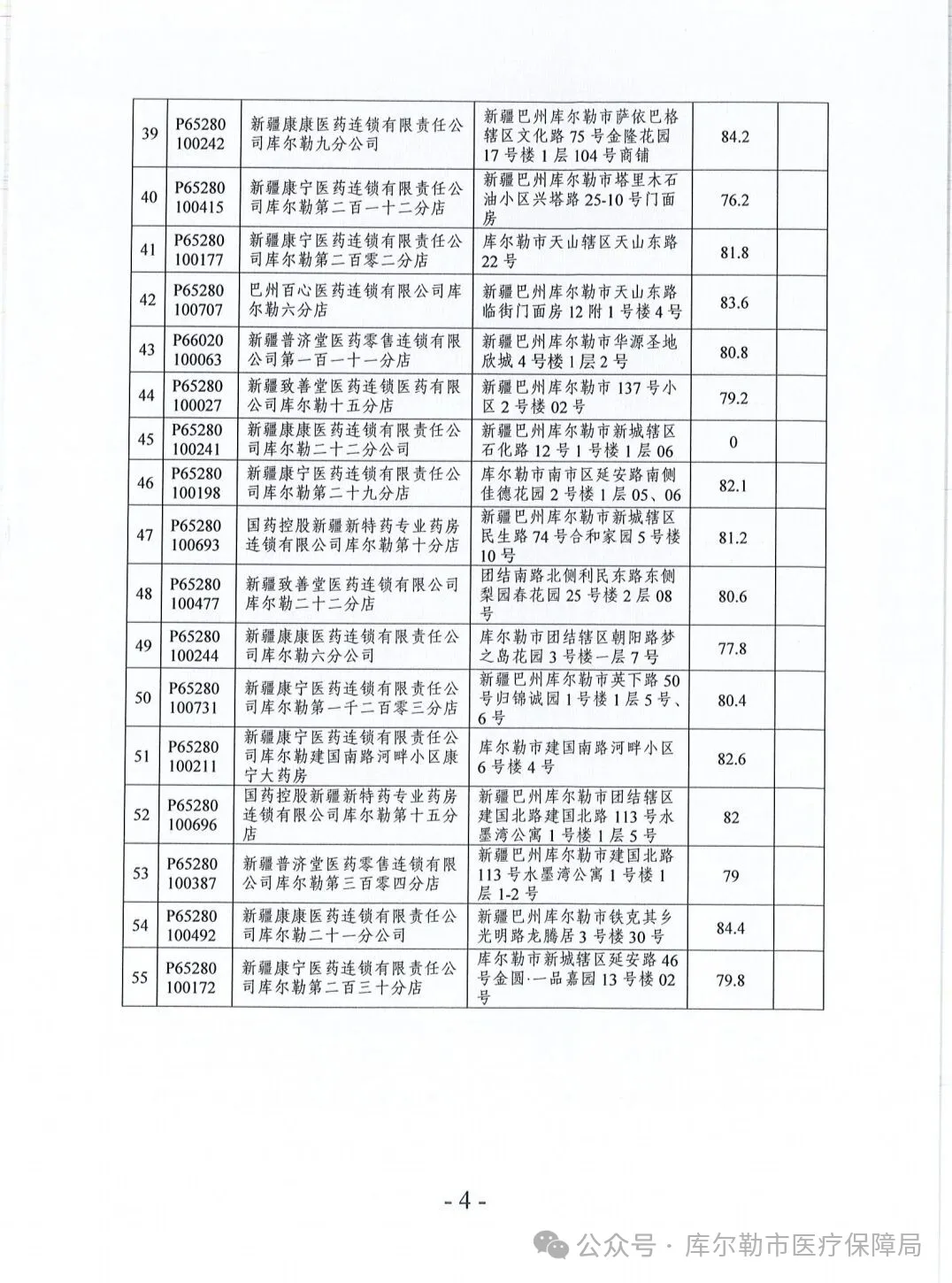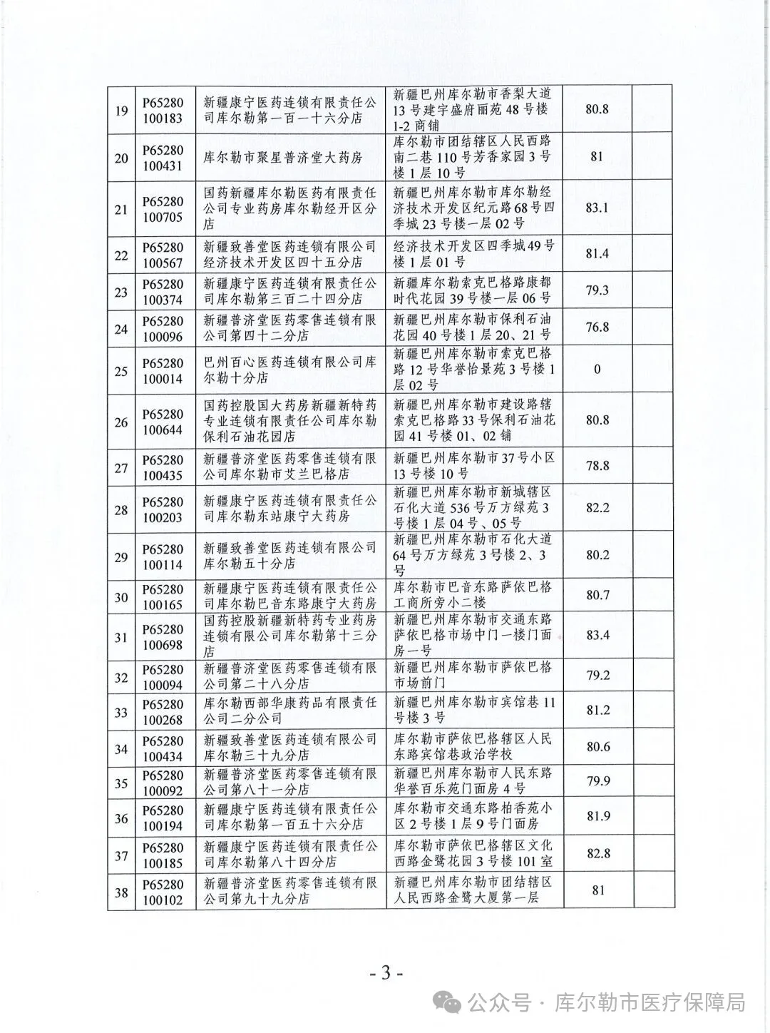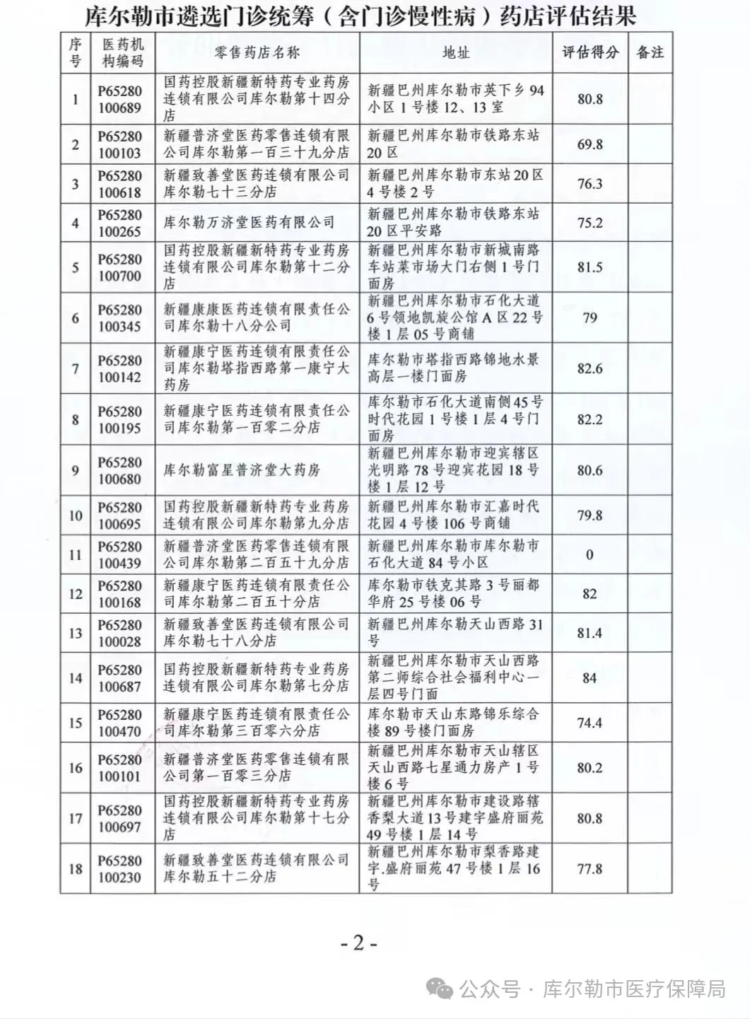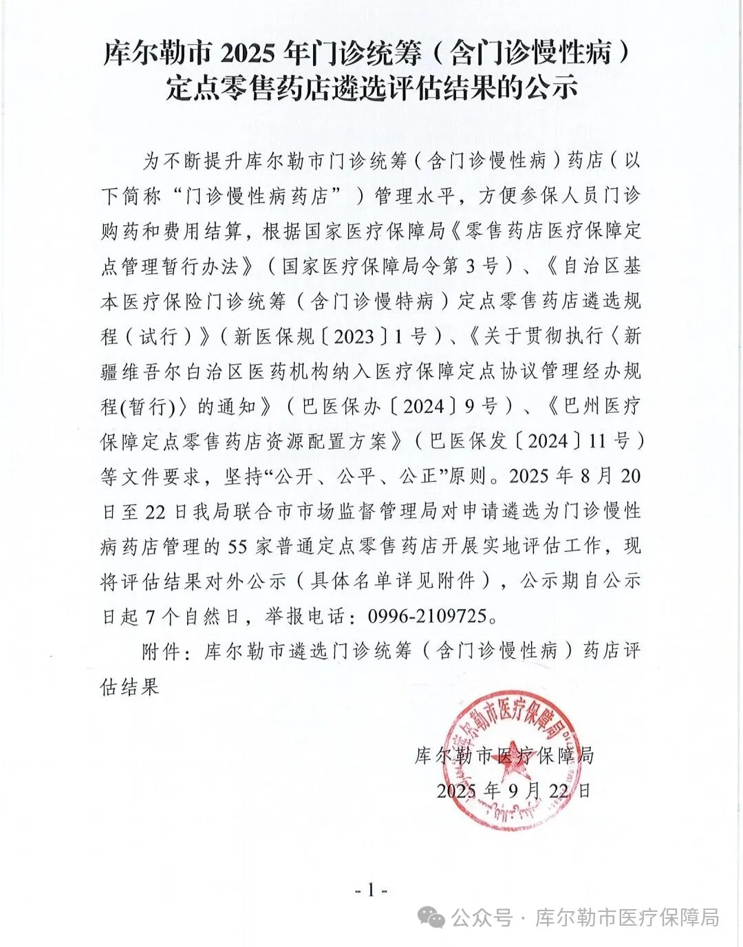 库尔勒市2025年门诊统筹(含门诊慢性病)定点零售药店遴选评估结果的公示