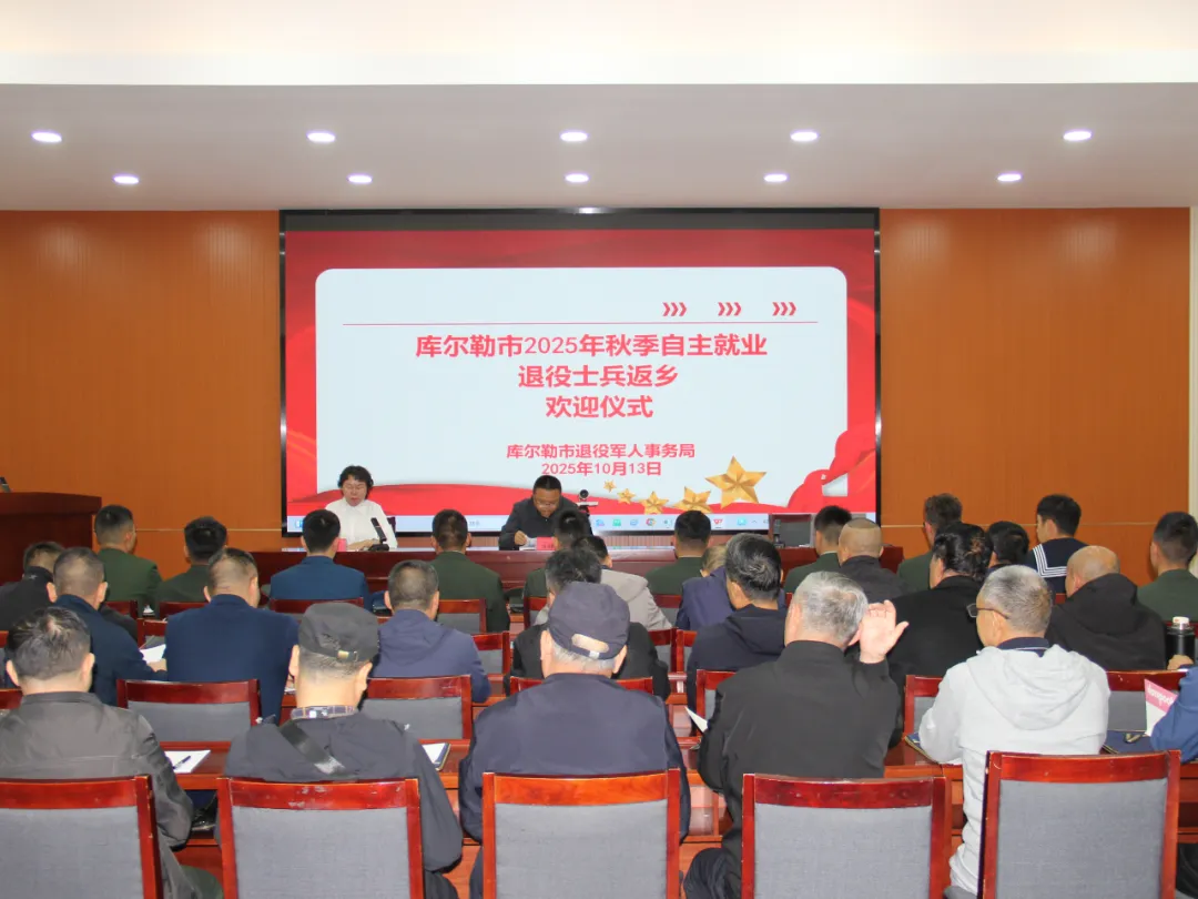 10月13日,库尔勒市退役军人事务局举行2025年秋季自主就业退役士兵欢迎仪式,迎接一批载誉归来的退役士兵回到家乡。