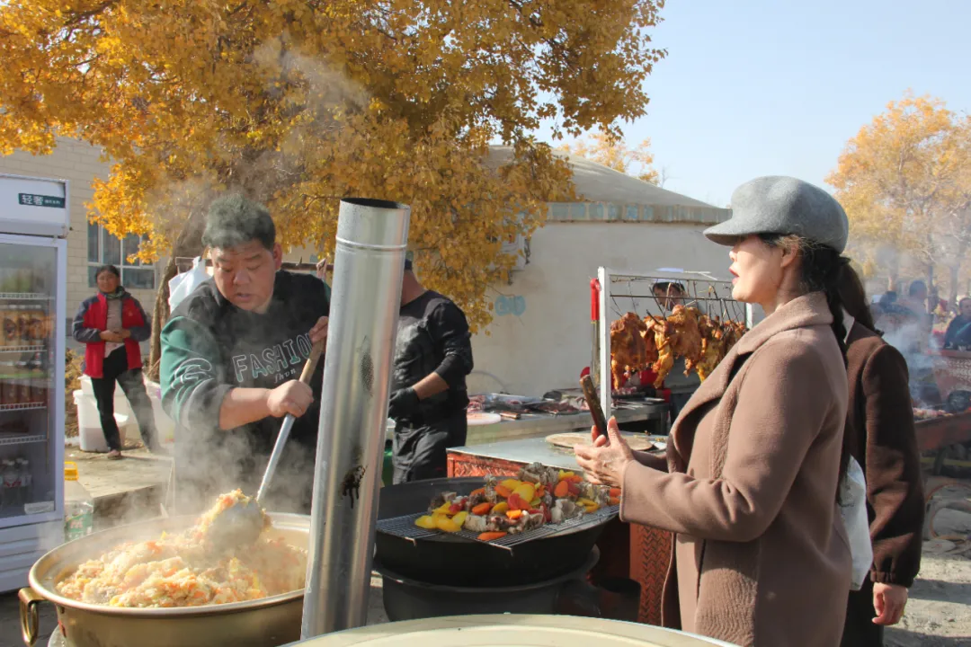 热闹的活动现场,折射出普惠胡杨景区日益浓厚的“烟火气”。旅游业的兴旺,持续带动周边经济发展。景区内,80余个商铺错落有致,烤肉、薄皮包子、抓饭等新疆特色美食香气四溢,新鲜的水果摊位与生活用品巴扎相映成趣,市井温情与地域特色交织交融。“普惠的羊肉真好吃,刚吃了羊肉串和薄皮包子,味道绝了!”市民亚森·木萨称赞道。