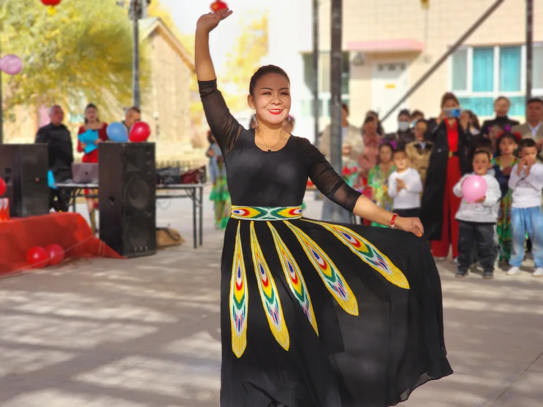活动现场座无虚席,人头攒动间满是欢声笑语。《美丽的姑娘》《十月最美好》《新疆是个好地方》等节目轮番登场,孩子们的演绎萌化全场,欢快的麦西来甫点燃现场氛围,歌声、掌声与欢呼声在胡杨林中久久回荡。趣味游戏中,大家在协作与欢笑中拉近距离,成功挑战的参与者还可以获得保温杯、棒棒糖等礼品。