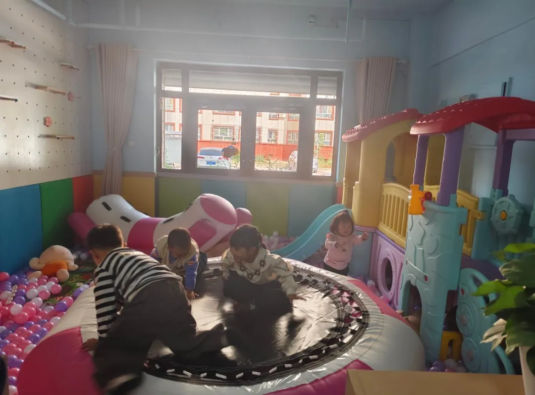 配备设备:滑滑梯、蹦蹦床、毛绒玩具、充气船、多变积木桌。