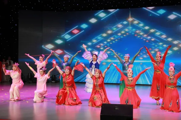 联欢会形式丰富多样、内容精彩纷呈。花儿舞蹈队带来的串烧《爱我中华》拉开晚会序幕,瞬间点燃现场气氛;菲尚舞蹈队带来的舞蹈《舞娥》《石榴花开》,将维吾尔族舞蹈的灵动与热情展现得淋漓尽致;格格梨花妇女志愿服务队带来的蒙古舞《站在草原望北京》及友好社区夕阳红文艺表演队带来的《守望草原》,让观众领略到了蒙古族的豪迈与深情。甜柚少女文艺表演队的集体舞《好汉歌》、邻里同行团的情景剧《社区阵线联盟》、青春90舞团的复古流行舞《港风星光·金曲年代秀场》等节目轮番上演,歌舞弹唱、柔力球、二重唱、服装秀等表演形式各具特色,石榴籽小分队、夕阳红文艺表演队等多支社区文艺队伍轮番登台,用真挚的表演传递出对祖国的热爱、对民族团结的期盼以及对社区美好生活的赞美。