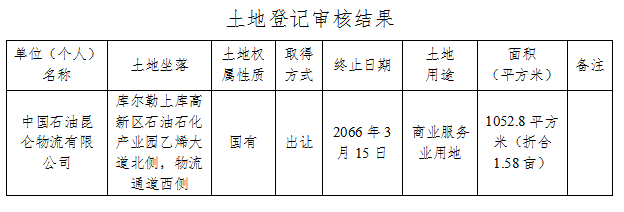 现将库尔勒市自然资源局对库尔勒上库高新区一宗土地登记审核结果予以公布(详见附表),若对公布的土地使用权等有异议者请于2026年5月12日前,到上库高新区自然资源局受理窗口申请办理复查手续,逾期没有提出异议的即认为上述公布的权益有效,将准予登记注册。