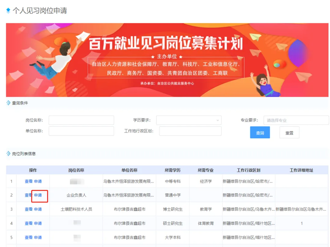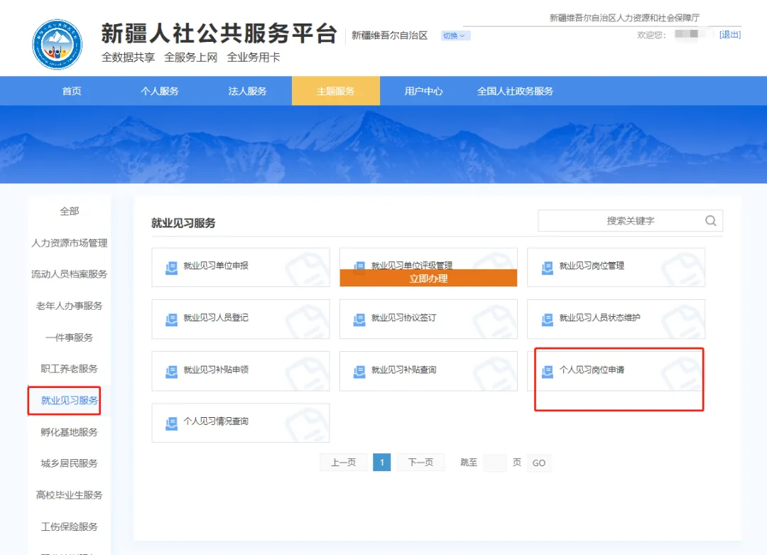 功能入口:主题服务-就业见习服务-个人见习岗位申请