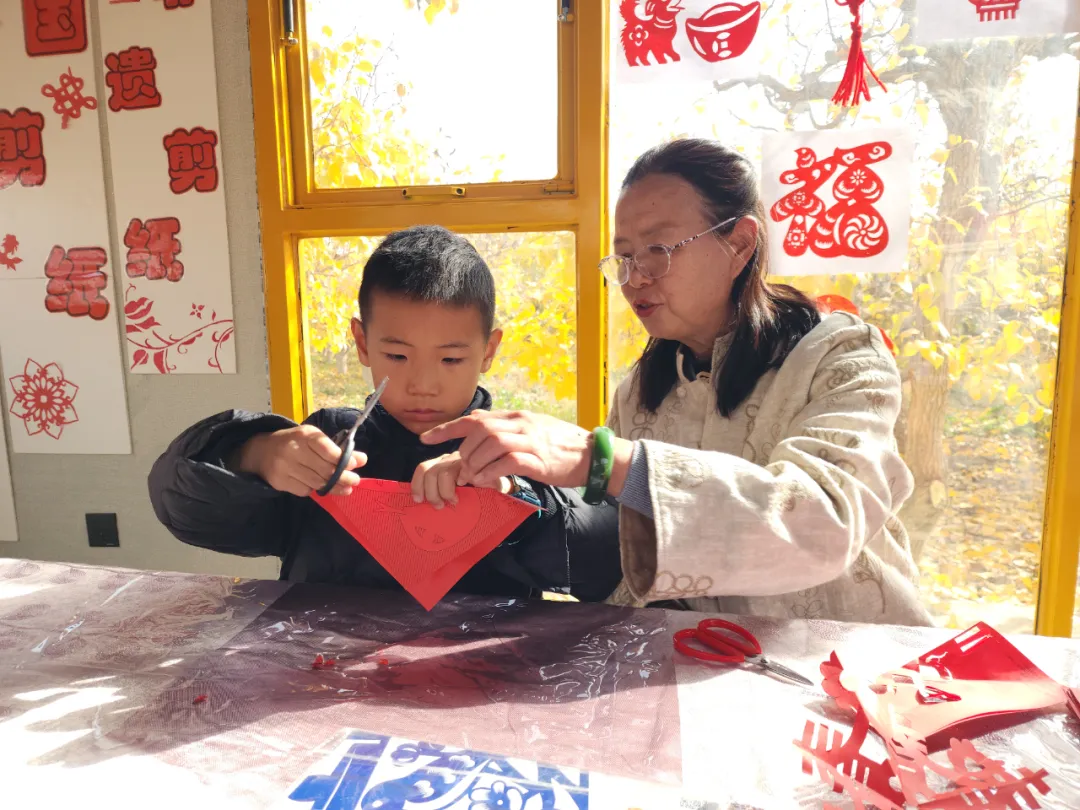 活动现场热闹非凡,剪纸、古法造纸、吹糖人三大传统技艺体验尤其受追捧。雅趣亭内,非遗传承人手持剪刀示范“梨花花样”剪纸,孩子们跟着折叠彩纸、勾勒线条,不一会儿,带有梨乡特色的窗花与生肖造型便跃然纸上。