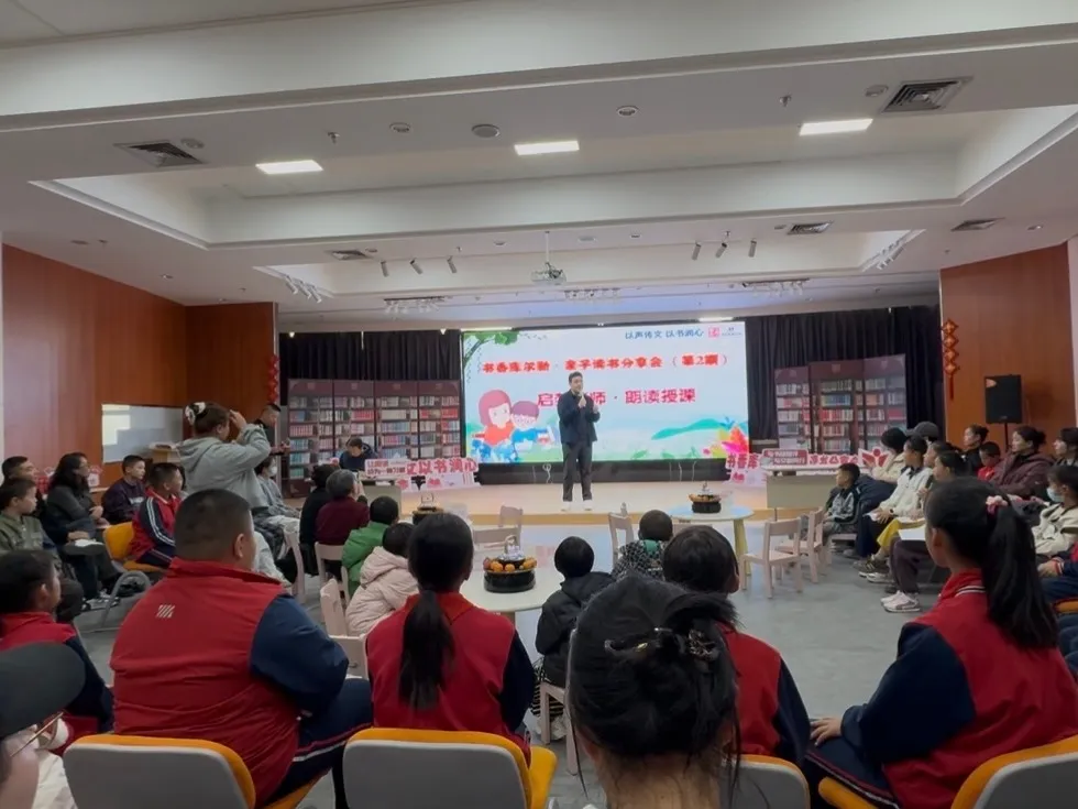 随后,启梦艺术培训中心老师带来一堂干货满满的朗读技巧培训课。着重对前后鼻音的发音难点进行讲解与示范,指导学生通过语调的起伏变化来传达情感。活动最后,全体参与人员齐声诵读,朗朗书声中,亲情与书香交织,将整场活动推向高潮。