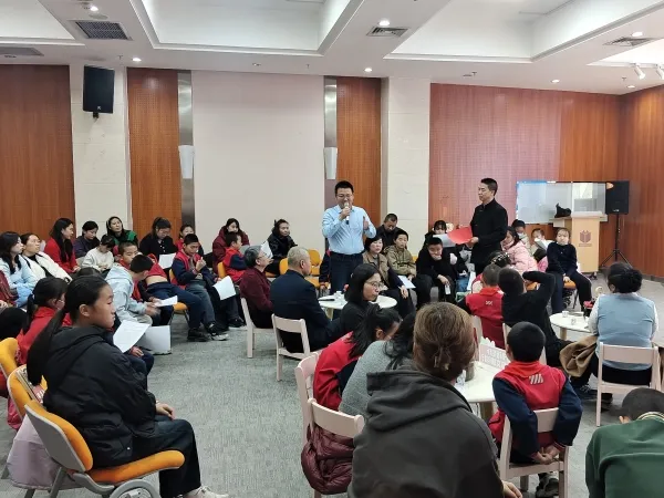 互动分享环节气氛热烈,孩子们踊跃举手,分享自己印象最深的语句,畅谈“假如拥有三天光明”的美好心愿。“光明盲盒”抢答游戏将现场氛围推向高潮,孩子们积极应答,在欢声笑语中加深对书籍的理解,获胜者可抽取定制礼品。亲子共读环节,亲子诵读经典段落,温暖的文字在共读中流淌,亲情与书香交融共生;随后,参与者集体诵读,用真挚的声音向生命致敬,现场洋溢着感动与力量。
