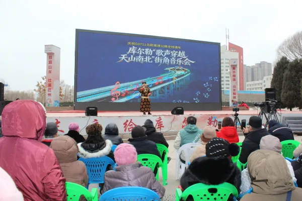 12月27日,库尔勒市建设桥风帆广场,人声鼎沸、旋律飞扬。由巴州党委宣传部、巴州文联、库尔勒市委宣传部、库尔勒市文旅局、库尔勒市文联联合主办的“歌声穿越天山南北”街角音乐会温情开演,以激昂婉转的旋律庆贺乌尉高速全线通车,为市民与八方游客献上一场浸润心灵的文化盛宴。