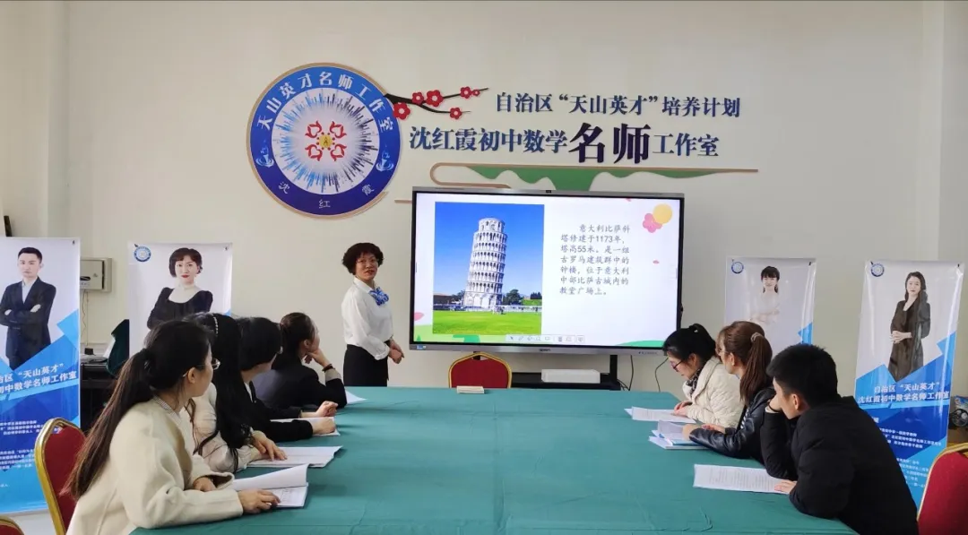 2023年,沈红霞牵头成立自治区“天山英才”初中数学名师工作室,汇聚全疆14名骨干教师,系统推进教学研究、课程改革与师资培训,充分发挥示范引领和辐射带动作用。