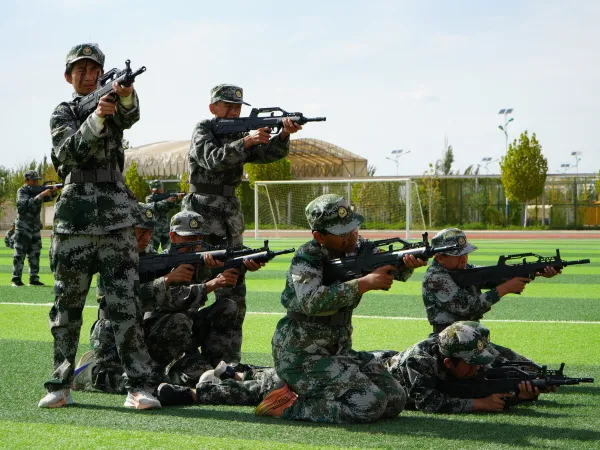 素质拓展与专题教育板块,“红心少年战士”素质拓展以职业体验的方式,通过队列训练、擒拿基础、模拟射击、枪械拆解与安装、迫击炮操作等一系列项目,让学生体验军人职业,系统提升身体素质与应急反应能力,有效强化纪律意识与国防观念。“烽火史鉴”思政课中,讲授新疆历史沿革与各族人民共同抗战的历程,引导学生深入学习新疆历史,在历史与现实的贯通中铸牢中华民族共同体意识。