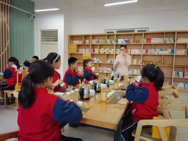 在库尔勒市梨香小学茶艺教室,学生在老师的指导下学习茶艺礼仪,感受传统文化的韵味。作为全国中小学中华优秀传统文化传承学校,市梨香小学充分整合校内外资源,开设掐丝珐琅、绒花、剪纸、茶艺等多个非遗技艺类社团。本学期新增舞龙舞狮社团,让158名学生在研习传统民俗表演套路的同时,培养坚韧拼搏的意志。