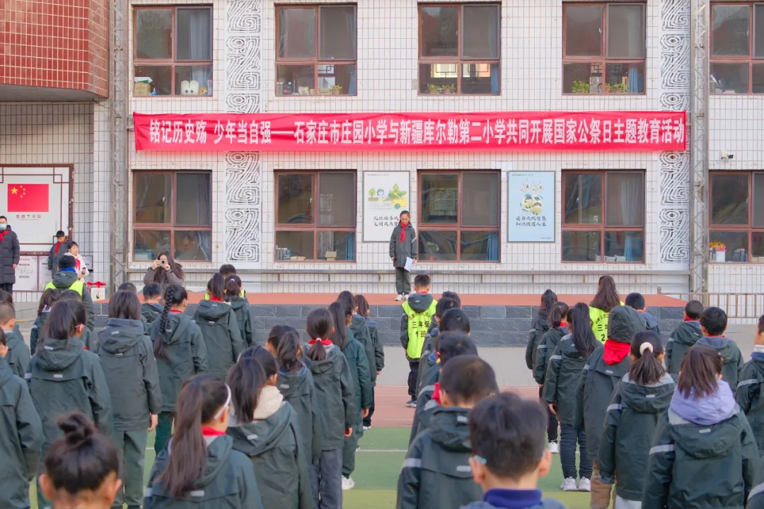 12月8日,库尔勒市第二小学与石家庄市庄园小学跨越地域阻隔,以“铭记历史殇·少年当自强”为主题,联合开展纪念“一二·九”运动与“国家公祭日”爱国主义教育活动,两校学生在庄严的仪式与深度交流中展现青春担当。