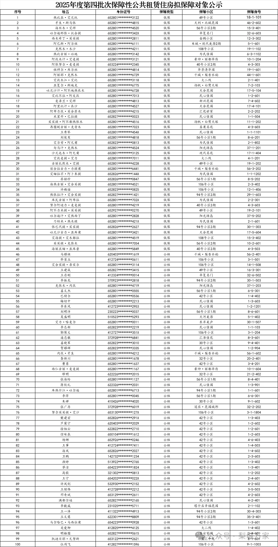 为切实解决广大群众的基本住房需求和阶段性住房困难,不断增强群众的获得感、归属感。根据国家三部委联合颁布的《关于公共租赁住房和廉租住房并轨运行的通知》、住建部第11号《公共租赁住房管理办法》、《自治区公租房管理办法(试行)》以及《库尔勒市公共租赁住房管理实施细则(试行)》相关规定,结合库尔勒市2025年度公共租赁住房保障计划,现对提交住房保障申请并符合保障条件的人员,拟纳入本年度第四批次公共租赁住房保障对象面向社会实名公示,接受广大市民监督。