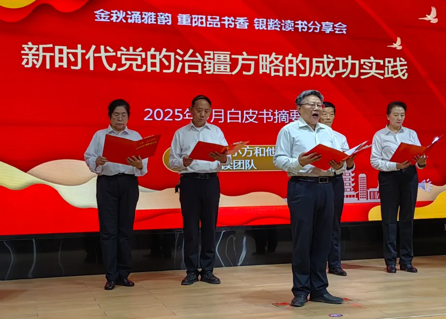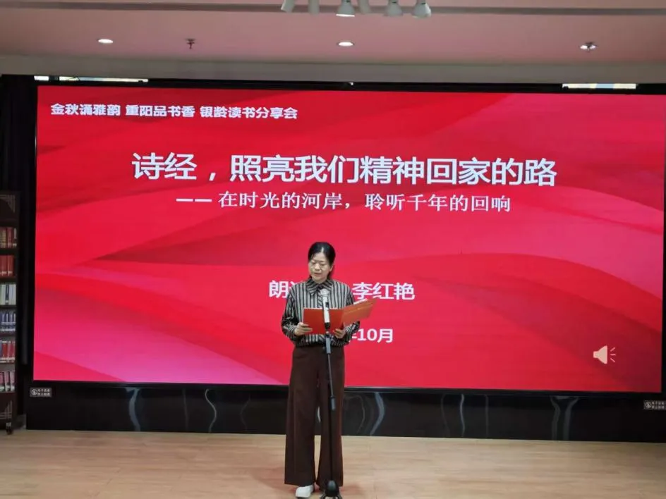 同时,市文艺文化志愿服务队结合重阳节文化内涵,在市图书馆开展“金秋诵雅韵重阳品书香”银龄读书分享会,大家坐在一起分享阅读心得,开展趣味竞猜游戏,脸上洋溢着幸福的笑容。