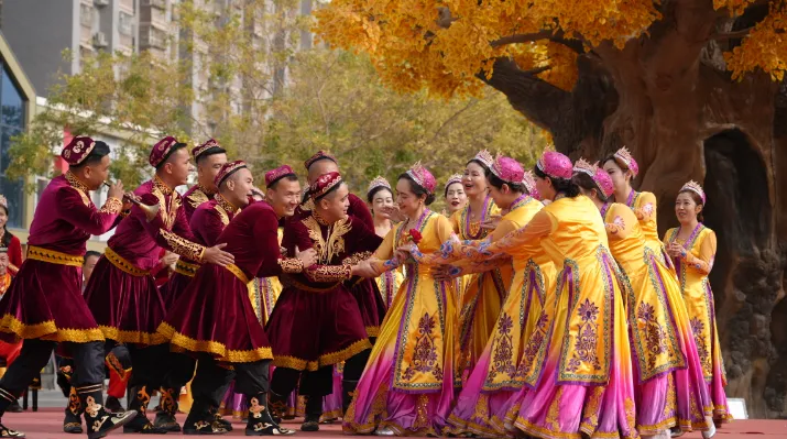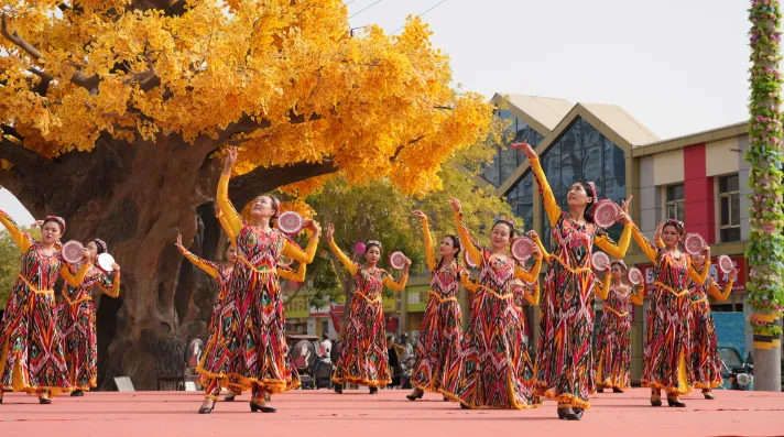 恰尔巴格乡《欢乐的丰收》领舞沙得尔·吾买尔说:“库尔勒赛乃姆是我们宝贵的文化遗产,希望通过表演让更多年轻人喜欢并传承它。同时,也想用舞蹈告诉大家,我们的生活,就像这丰收的景象一样,充满希望和欢乐。”
