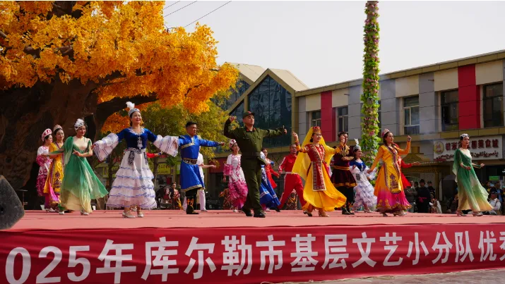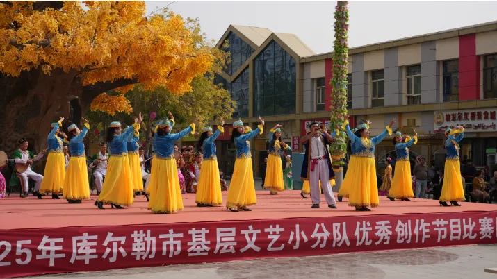 10月8日,库尔勒市基层文艺小分队优秀创作节目比赛(乡镇组)在梨城美食街热闹开赛。各乡镇文艺爱好者齐聚一堂,带来9个原创或改编特色节目,以歌舞传递乡土风情,用表演诉说幸福生活,为现场观众带来一场充满烟火气的文化盛宴。