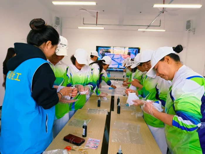 活动伊始,非遗扎染技艺老师通过生动的PPT和实物展示,向居民普及扎染文化知识,详细讲解扎染的起源与发展历程,帮助大家全面了解古老技艺。随后,分发扎染材料包,大家纷纷跃跃欲试。