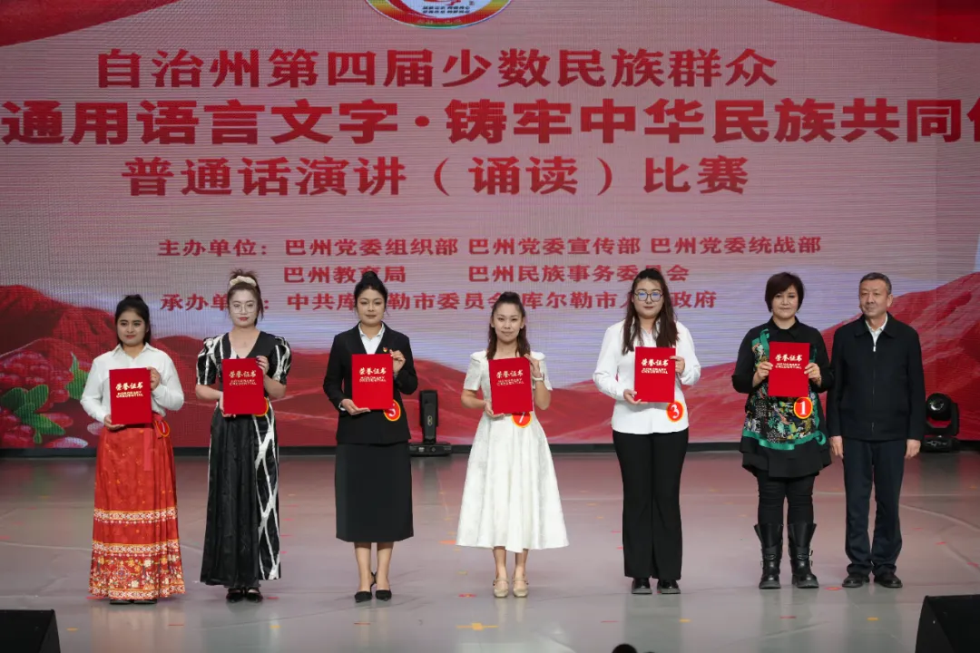 为深入贯彻落实党的二十届四中全会精神及自治区党委十届十五次全会、自治州党委十一届十三次全会部署要求,以语言相通凝聚民族团结之力,12月5日,巴州第四届“学用国家通用语言文字·铸牢中华民族共同体意识”普通话演讲(诵读)比赛在库尔勒市圆满落幕。州、市四套班子分管领导及相关部门负责同志参加活动。