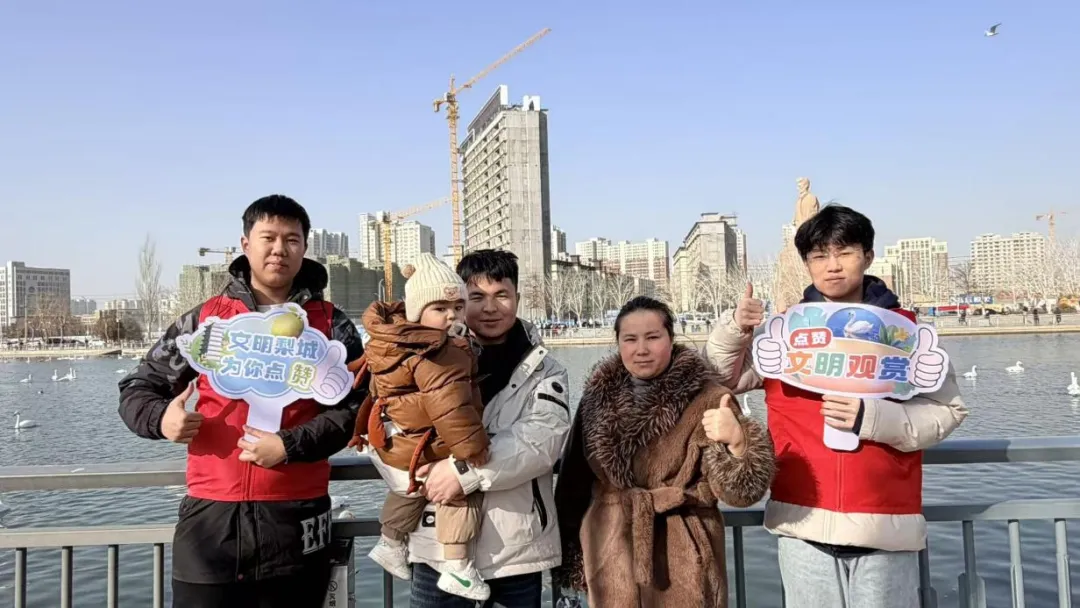 在杜鹃河畔,梨香街道返乡大学生志愿者为文明观赏天鹅、不乱投喂的游客点赞;在新城街道,志愿者与环卫工人一同为主动捡拾垃圾、爱护环境的市民点赞。这些点赞聚焦于市民文明行为——手中那根紧紧的牵引绳、斑马线前的一次耐心等候、对公共环境的一份自觉爱护。