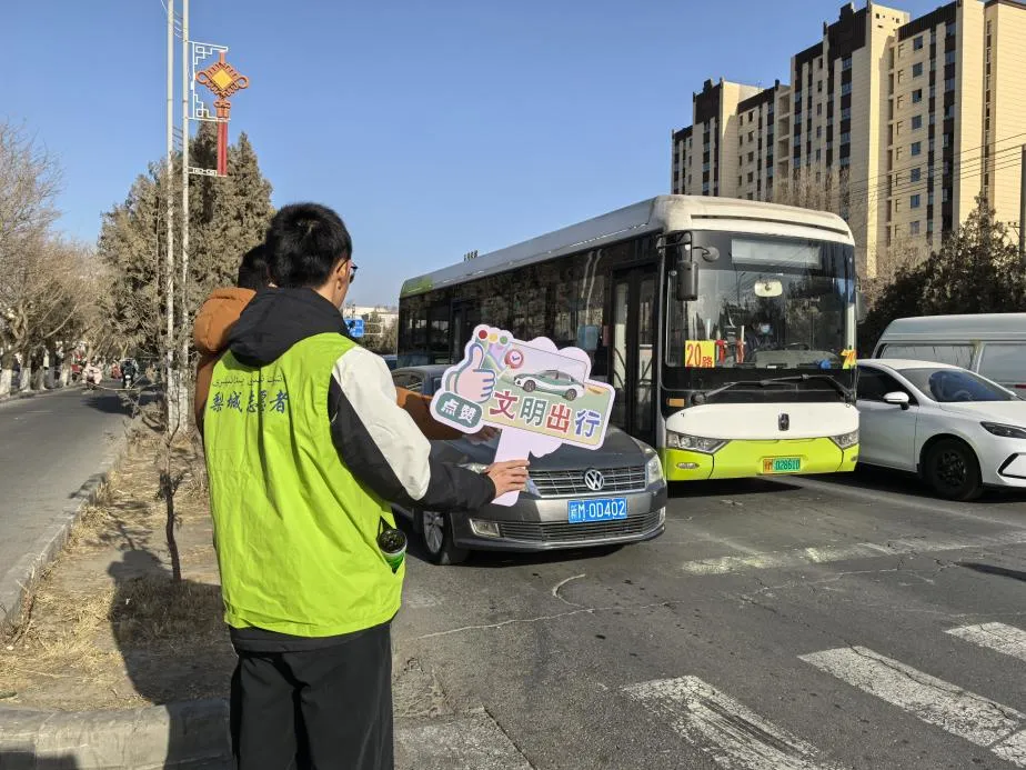 在萨依巴格街道商业街小康城前路口,“你讲文明,我点赞”不仅是一句口号,更是一堂行走的文明课,每当有车辆主动停车礼让行人,孩子们便在返乡大学生志愿者的引导下,向司机点赞致意。孩子们化身“文明小使者”,既在交通路口劝导“一盔一带”文明引导,又在小区里宣传文明养犬理念。