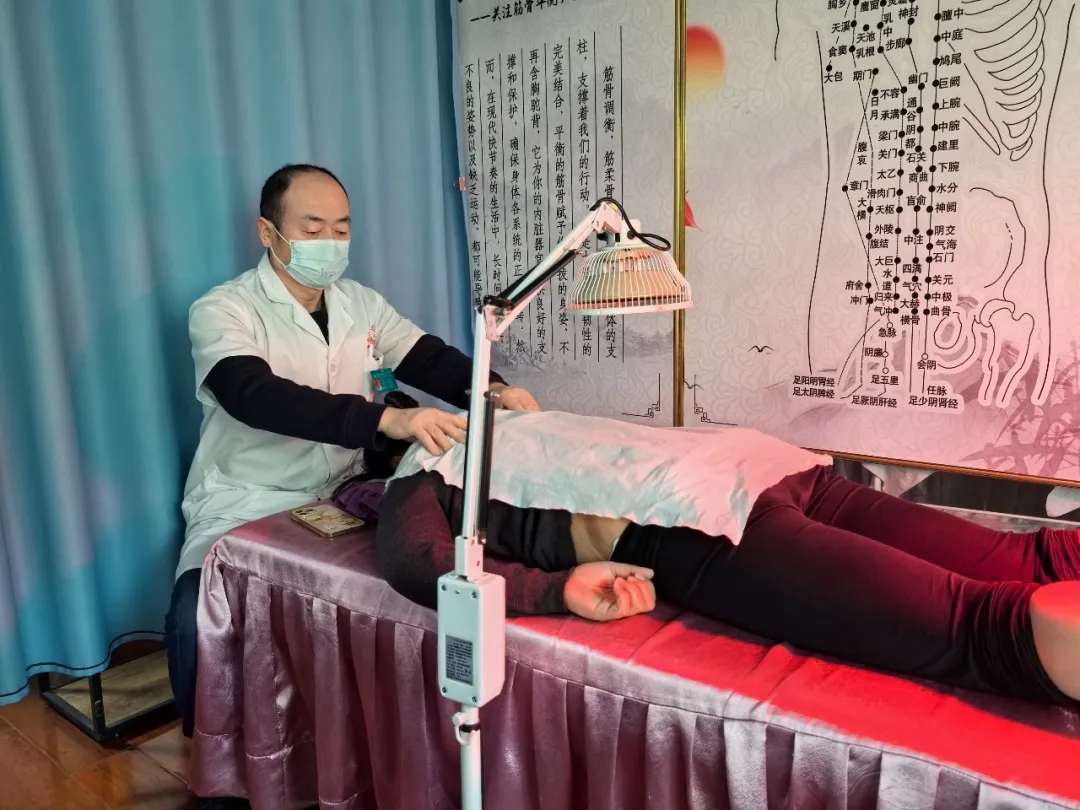 中医治疗区内,新苇社区卫生服务站医师均拥有十多年临床经验,对传统中医疗法有着丰富的经验。他们会先通过“望闻问切”精准辨证,再结合居民的具体症状,灵活运用针灸、推拿、拔罐、艾灸、中药熏蒸等多种传统技艺组合施治。针对上班族高发的颈椎病,医师会精准找准穴位进行针灸通络,搭配深层推拿放松紧张肌肉,再辅以艾灸、红外线、中频电治疗仪温通气血,不少居民做完一次就感觉颈部僵硬感明显缓解;对于中老年人常见的腰腿痛、膝关节不适,中药熏蒸结合拔罐的疗法能有效疏通经络、驱散寒湿,配合后续的康复指导,帮助许多老人恢复行动;而针对长期失眠、脾胃失调等慢性问题,医师则会制定长期调理方案,通过温和的推拿手法和针对性艾灸,循序渐进改善体质,不少受失眠困扰多年的居民,在坚持调理后实现安稳入眠。