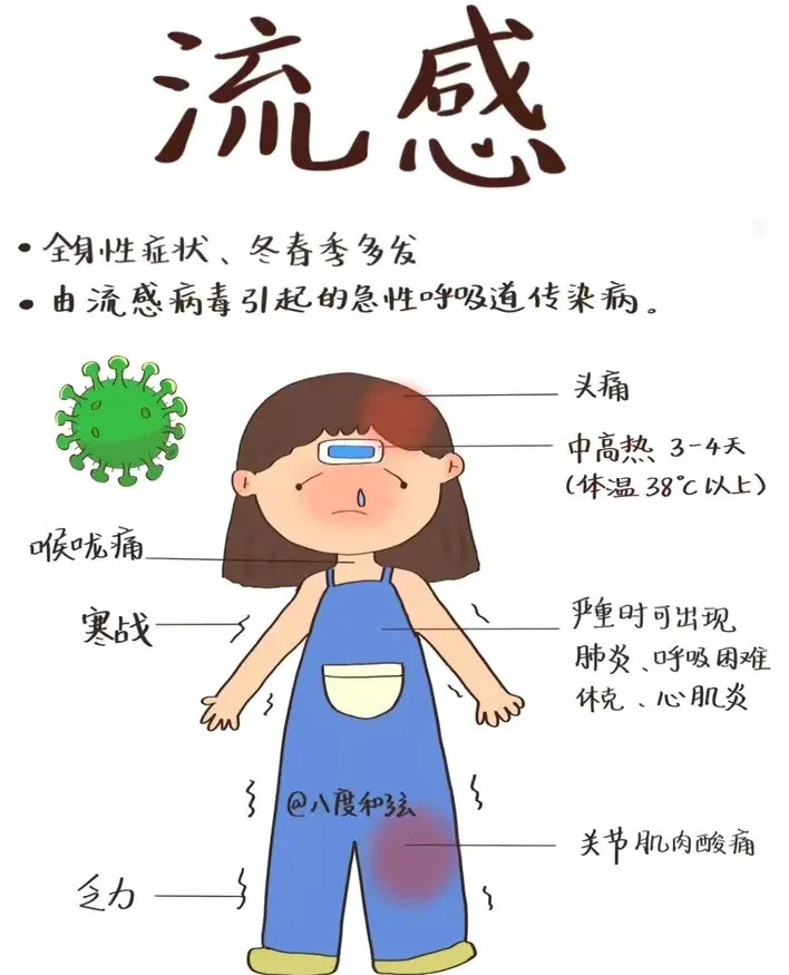 流感与普通感冒不同,其危害不仅在于感染本身,更在于可能引发的多种严重并发症,给个人带来严重的健康负担和经济负担。感染流感病毒后多数患者以发热、头痛、肌痛和全身不适起病,体温可达39~40℃,并发症中肺炎最为常见,其他并发症有神经系统损伤、心脏损伤、急性肾损伤和肾衰竭、肌炎和横纹肌溶解、休克等。老年人、5岁以下儿童、慢病患者、孕妇以及免疫功能低下等人群易发生重症。