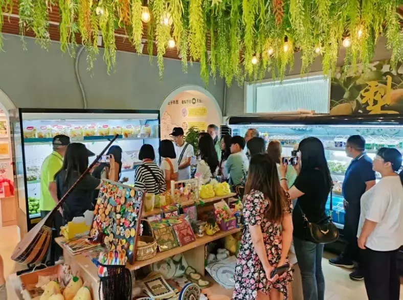 上午走进库尔勒香梨旗舰店,品尝香梨蒸馏酒、香梨果酒、香梨膏等优质文创产品,畅游香梨展区、文创区、饮品区、书吧和休闲区,一站式体验“库尔勒味道”。