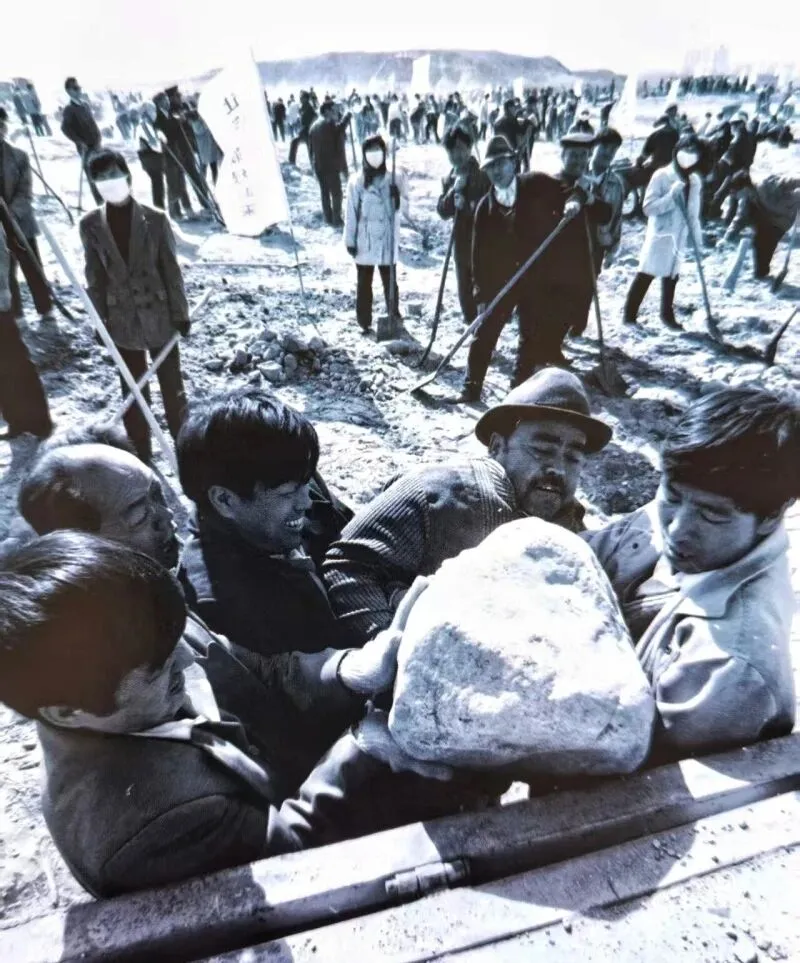 1998年3月10日,市民在库尔勒龙山搬走石头准备植树。(图片摘自人民日报1998年3月24日第3版 王立华 摄)