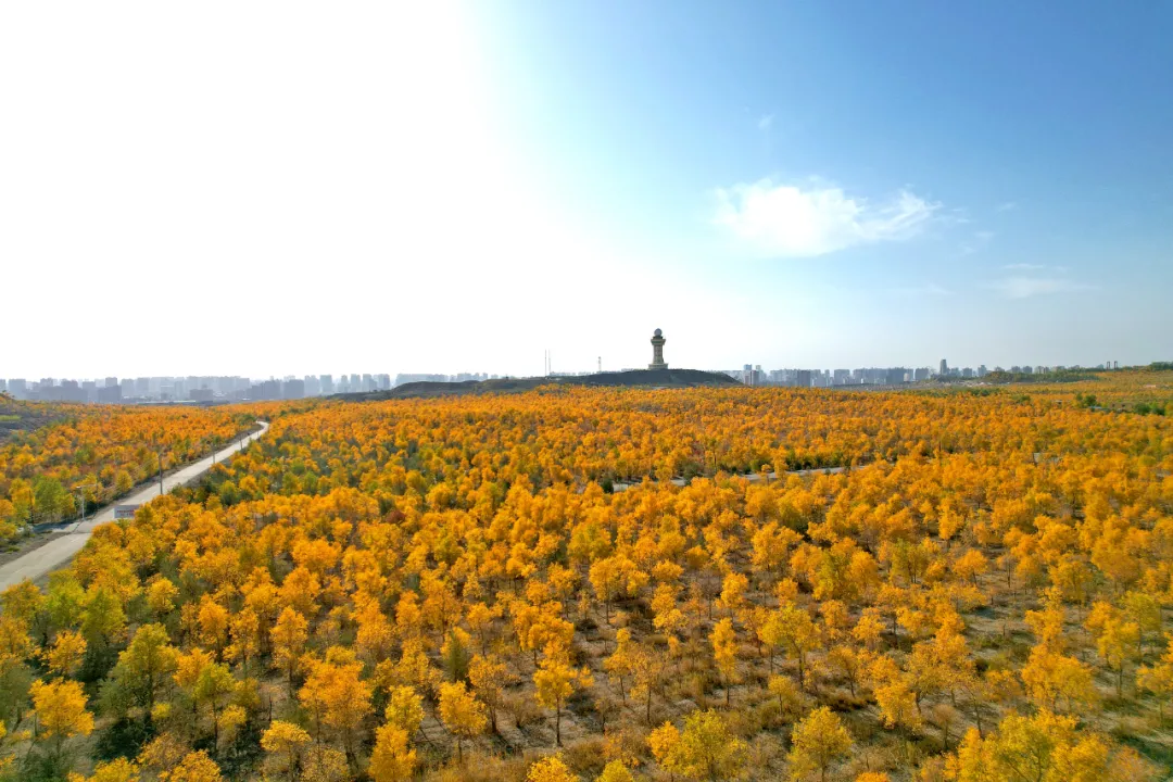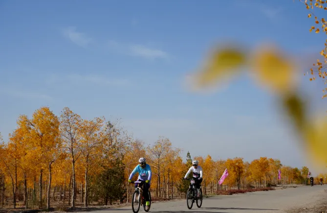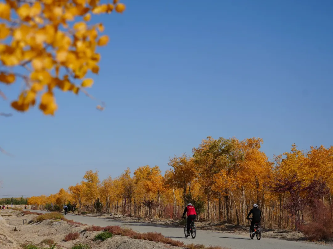 如果你喜欢骑车,龙山公园绝对能满足你的骑行需求,新修建的自行车道让你在运动健身的同时欣赏秋日胡杨美景,来一场身体与精神的双重享受。